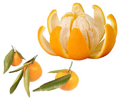 L'orange est, comme son nom l'indique, de couleur orange. Elle possède une peau épaisse et assez rugueuse. Elle se découpe en quartiers comme sa cousine la mandarine. L'orange est un fruit juteux, sucré, excitant et il contient de la vitamine C. On utilise ce fruit pour les salades de fruits, les confitures, ou pour consommer son jus. Les oranges sanguines tirent leur nom de la couleur totalement ou partiellement rouge de leur chair.Cette coloration est du à la présence d'anthocyane, dont la synthèse démarre chez certaines espèces quand elles subissent un coup de froid. Les anthocyanes de l'orange sont à l'origine bleue mais virent au rouge en présence de l'acidité de l'orange.